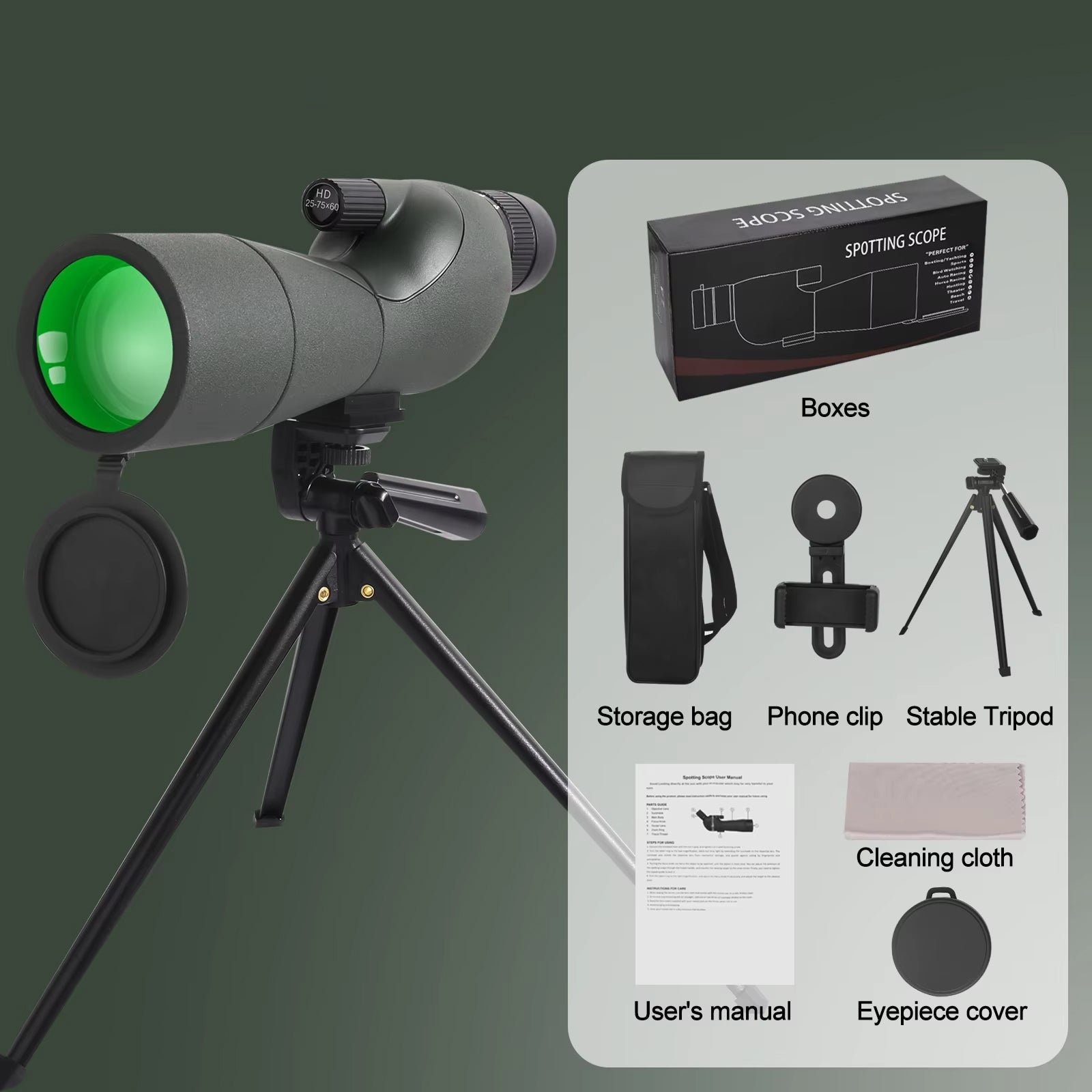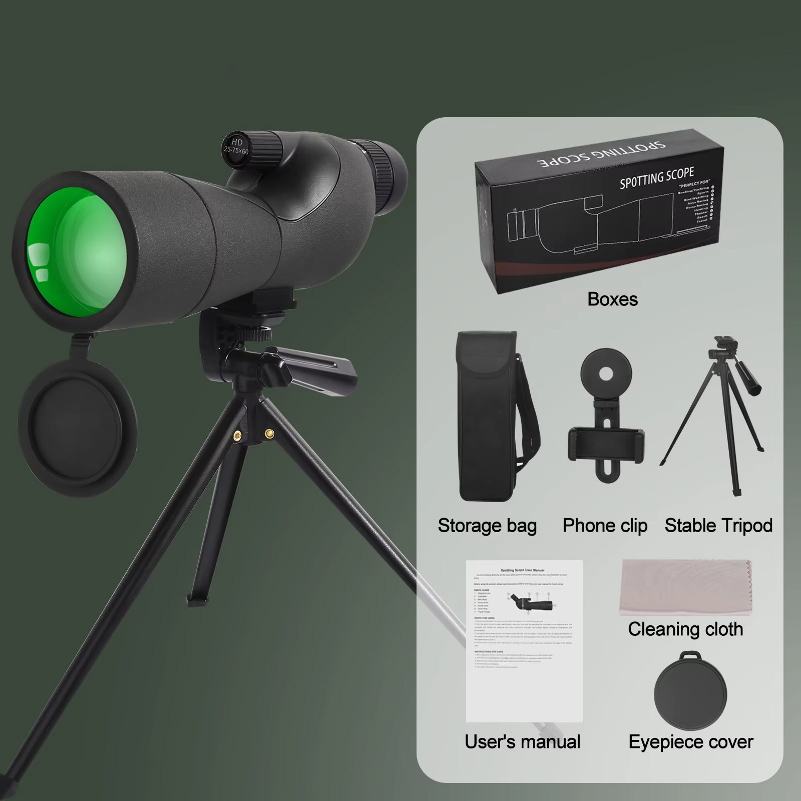 Tripod, phone adapter, carrying case, and cleaning accessories are all included. Unbox VistaPeak and be field-ready in under two minutes.